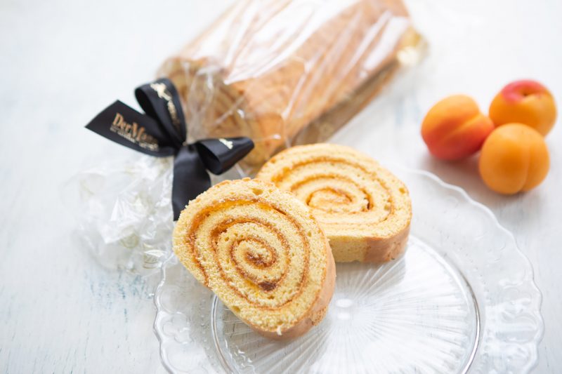 Das saftig-aromatische Biskuit wird nach dem Backen grosszügig mit Marillenmarmelade bestrichen und aufgerollt.