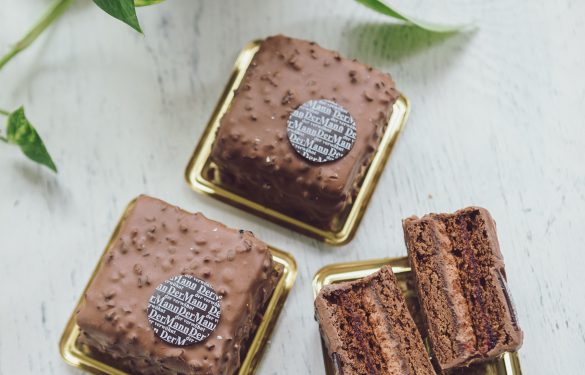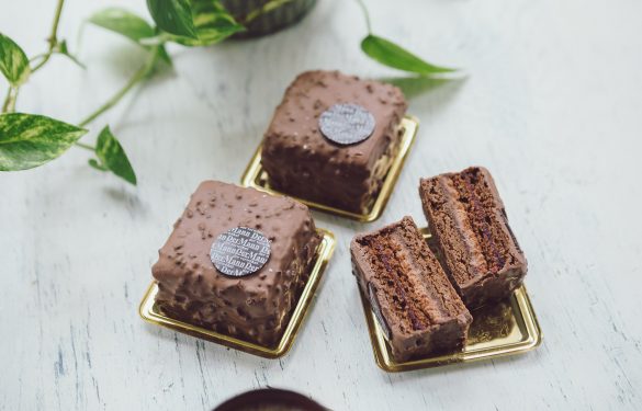 Feine Sacherböden gefüllt mit Knusperfüllung, darüber Nougatoberscreme und Ribisel-Preiselbeerfruchtfüllung. Überzogen mit Nougat, welches feine Kakaostückchen enthält. Ein Knusper-Erlebnis für Schokolade-Fans!