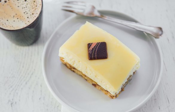 Saftiger Nuss-Schokoboden mit Eierlikör-Schlagobers und Eierlikörspiegel.
