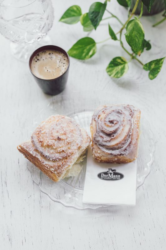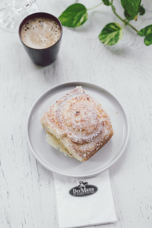 Unser beliebter Butterplunderteig zu einer süssen Schnecke gerollt. Nach dem Backen wird die Schnecke mit einer Staubzucker-Frischrahm-Kokos-Glasur bestrichen.
