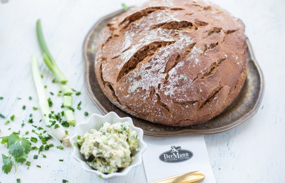 Der rustikale Brotlaib mit der knusprigen, aufgesprungenen Kruste hält gut frisch und schmeckt vor allem zu bodenständigen Jausen.