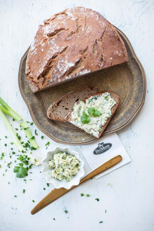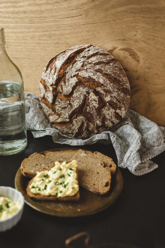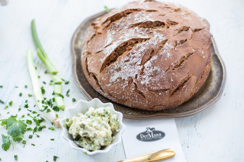 Der rustikale Brotlaib mit der knusprigen, aufgesprungenen Kruste hält gut frisch und schmeckt vor allem zu bodenständigen Jausen.