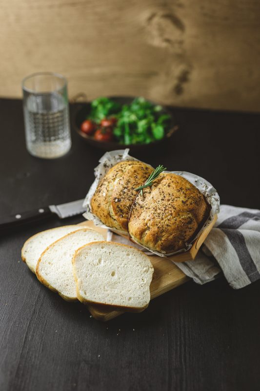 Ein italienisches Weissbrot mit dem aromatischen Geschmack von mediterranen Kräutern und Olivenöl, abgerundet durch Meersalz. Dieses in Italien Focaccia oder auch Focaccine genannte Hefeteiggebäck macht durch sein rustikales Aussehen Gusto und erfreut den Gaumen durch seine Saftigkeit. Hält lang frisch!
