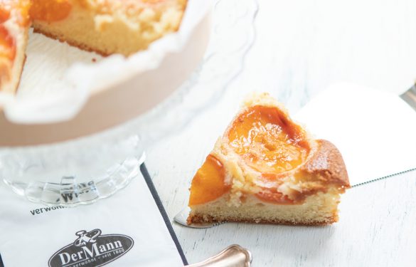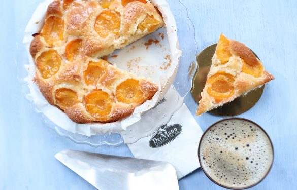 Eine saftige Sandmasse wird mit Marzipan verfeinert, mit Marillenhälften belegt und nach dem Backen mit Gelee überzogen.