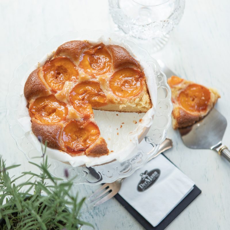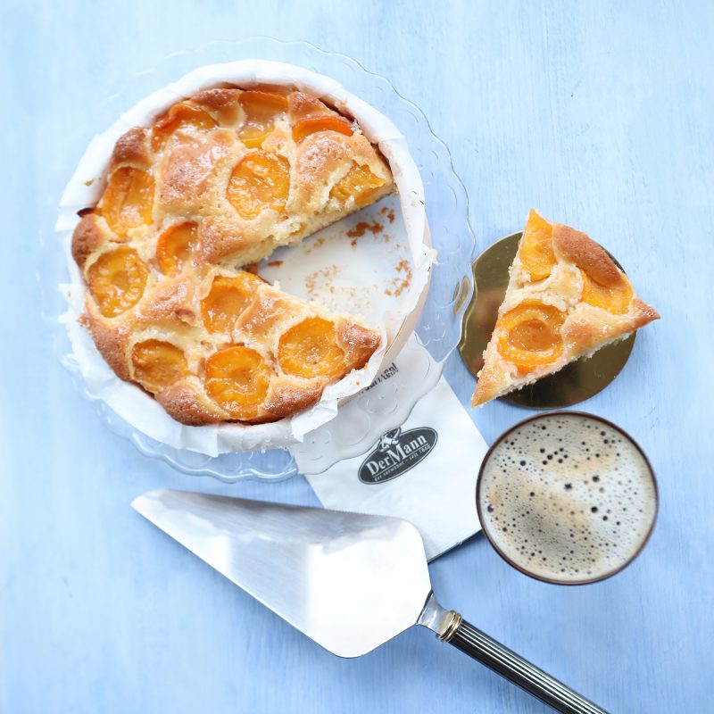 Eine saftige Sandmasse wird mit Marzipan verfeinert, mit Marillenhälften belegt und nach dem Backen mit Gelee überzogen.