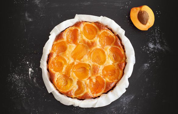 Eine saftige Dinkel-Sandmasse wird mit Marzipan verfeinert, mit Marillenhälften belegt und nach dem Backen mit Gelee überzogen.