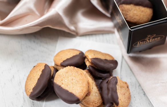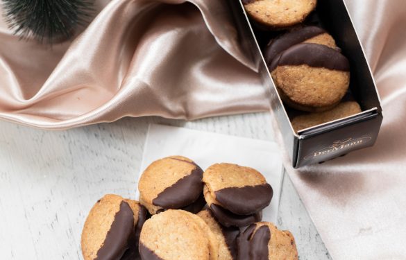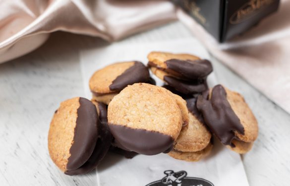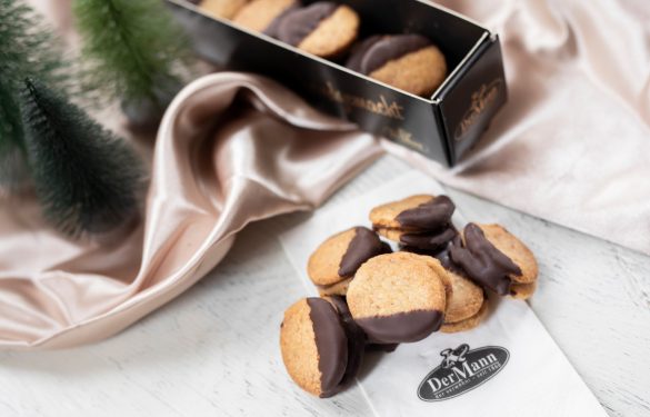 Knuspriger Nussmürbteig gefüllt mit feiner Nougatcreme zusammengesetzt.