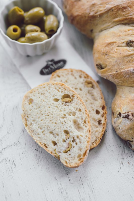 Der Weizenteig mit Olivenöl und entkernten Oliven entfaltet nach einer besonders langen Reifezeit seinen Geschmack. Durch einen schonenden Backvorgang entsteht ein aromatisches, lange saftig bleibendes Brot.