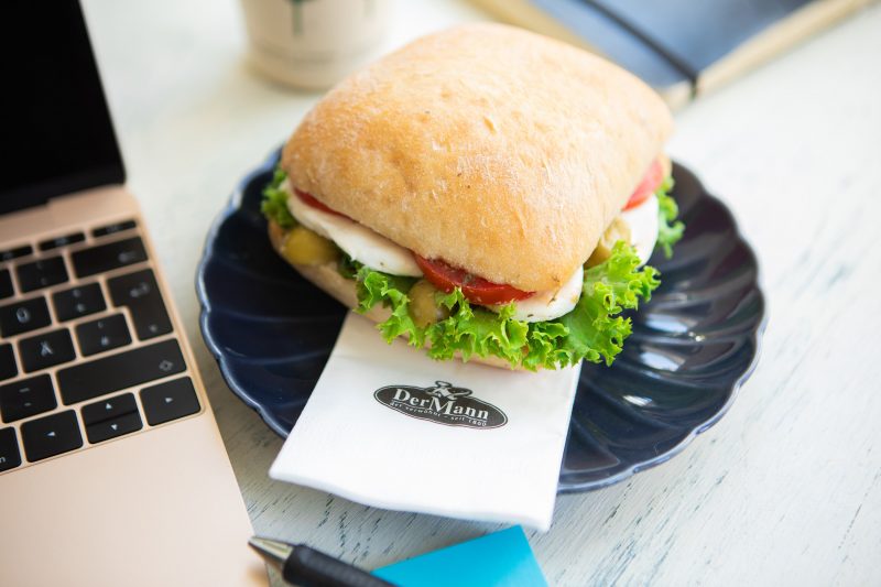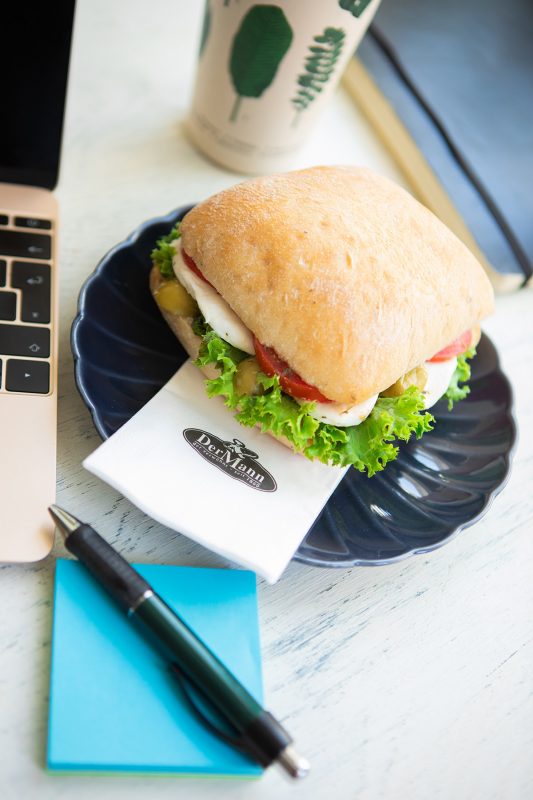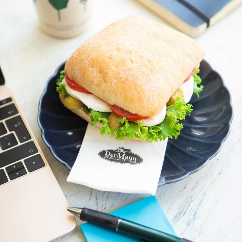 Flaumiges Ciabattakissen mit Mozzarella, ital. Kräutern, Oliven, Tomaten und Lolo Salatgefüllt.