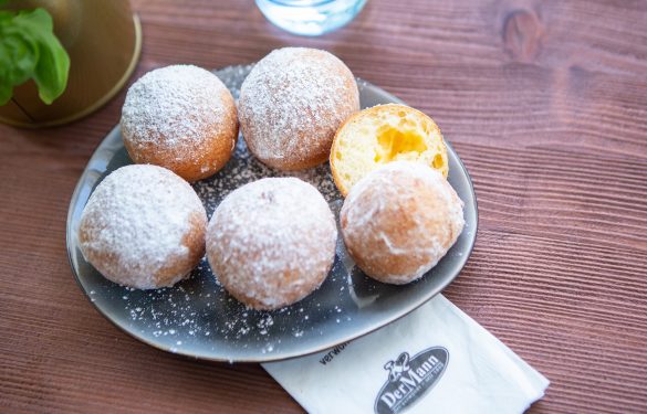 Unser herrliches Topfenbällchen gefüllt mit Puddingcreme.