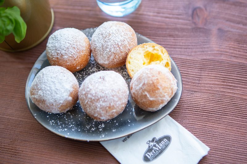 Unser herrliches Topfenbällchen gefüllt mit Puddingcreme.