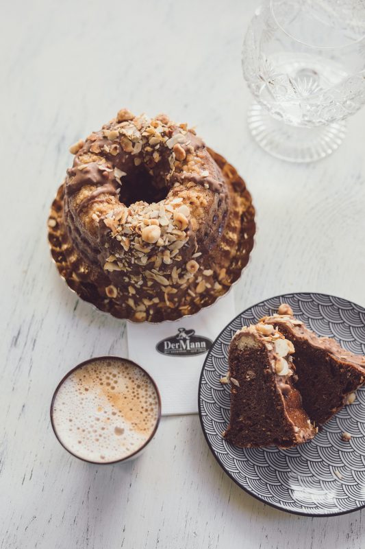 Zucker, HÜHNEREIEIWEISS, 16% BUTTER, WEIZENMEHL, HÜHNEREIEIGELB, 12% Schokolade [Kakaomasse, Kakobutter, VOLLMILCHPULVER, SÜSSMOLKENPULVER, Emulgatoren (SOJALECITHIN, Sonnenblumenlecithin), natürliches Vanillearoma], Nougatcreme (Rapsöl, HASELNUSSMARK, Palmfett), 6% HASELNÜSSE, Gelee (Wasser, Glukosesirup, Geliermittel Pektin, Säuerungsmittel Citronensäure, Säureregulator Diphosphate, Konservierungsstoff Kaliumsorbat), MANDELN, Semmelbrösel (Hefe, WEIZENMALZMEHL, Weizenkleber), Aromen, Speisesalz jodiert (Siedesalz, Kaliumjodid).