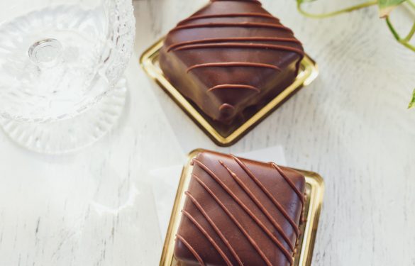 Eine kleine süsse Belohnung ist dieser mit Schokolade gefüllt und überzogene Biskuitwürfel.