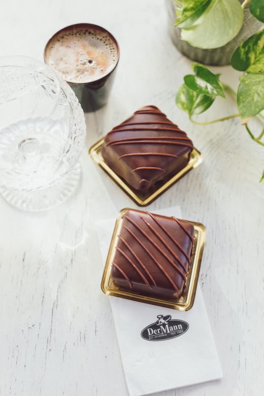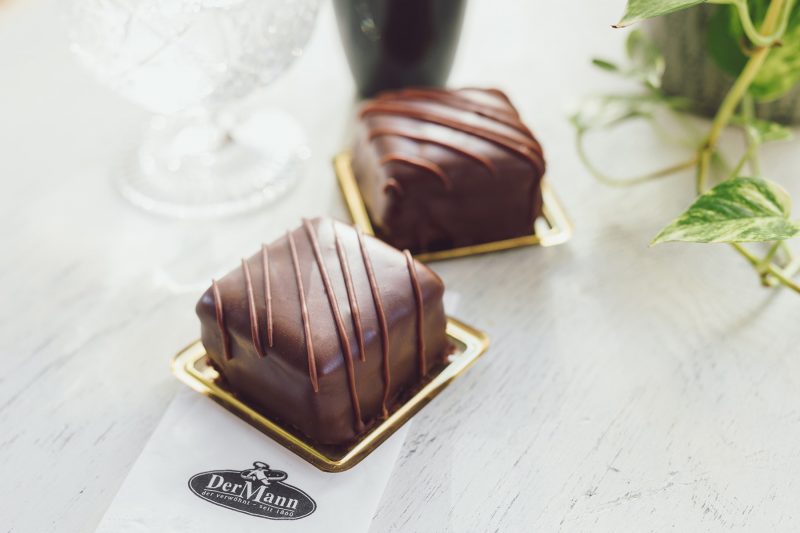 Eine kleine süsse Belohnung ist dieser mit Schokolade gefüllt und überzogene Biskuitwürfel.