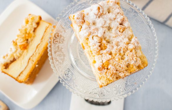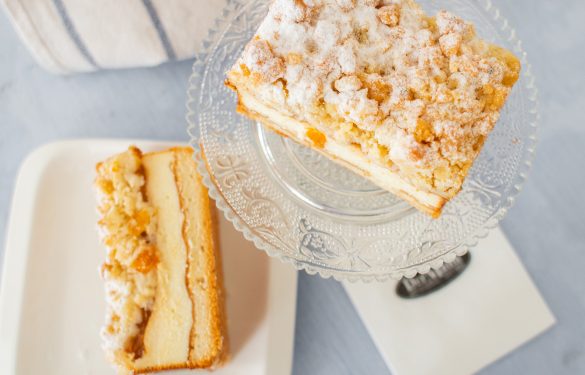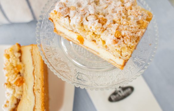 Die aus Mürbteigböden, feiner Topfenmasse und fruchtiger Marillenfülle zubereitete und mit knusprigem Butterstreusel vollendete Mehlspeise verwöhnt den Gaumen mit ihrem erfrischenden Aroma.