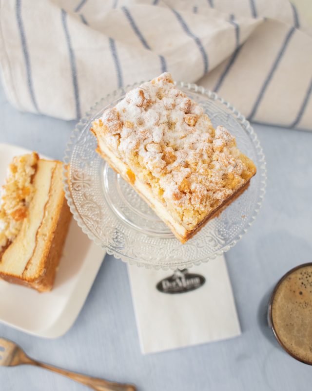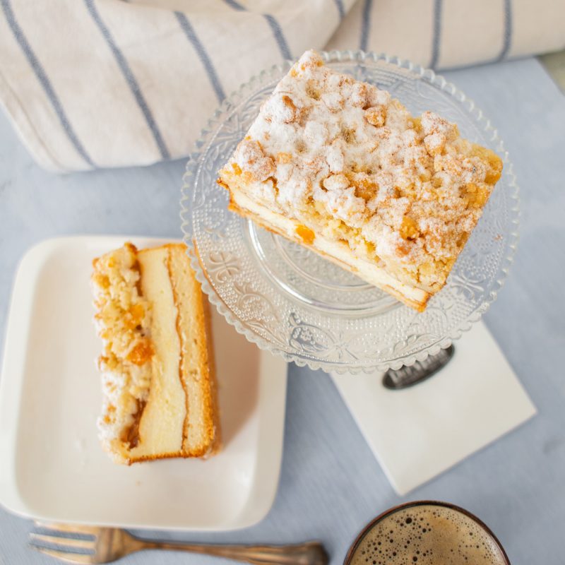 Die aus Mürbteigböden, feiner Topfenmasse und fruchtiger Marillenfülle zubereitete und mit knusprigem Butterstreusel vollendete Mehlspeise verwöhnt den Gaumen mit ihrem erfrischenden Aroma.