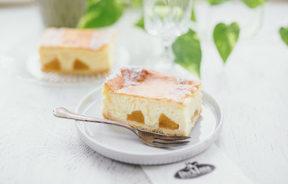 Das erfrischend-aromatische Topfensouffle schmilzt zart am Gaumen und hinterlässt den fruchtigen Geschmack reifer Pfirsiche.