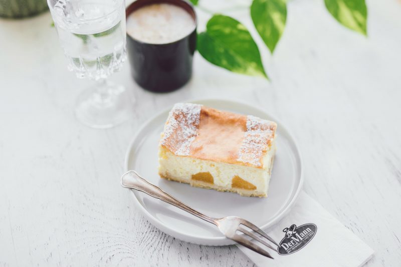 Das erfrischend-aromatische Topfensouffle schmilzt zart am Gaumen und hinterlässt den fruchtigen Geschmack reifer Pfirsiche.