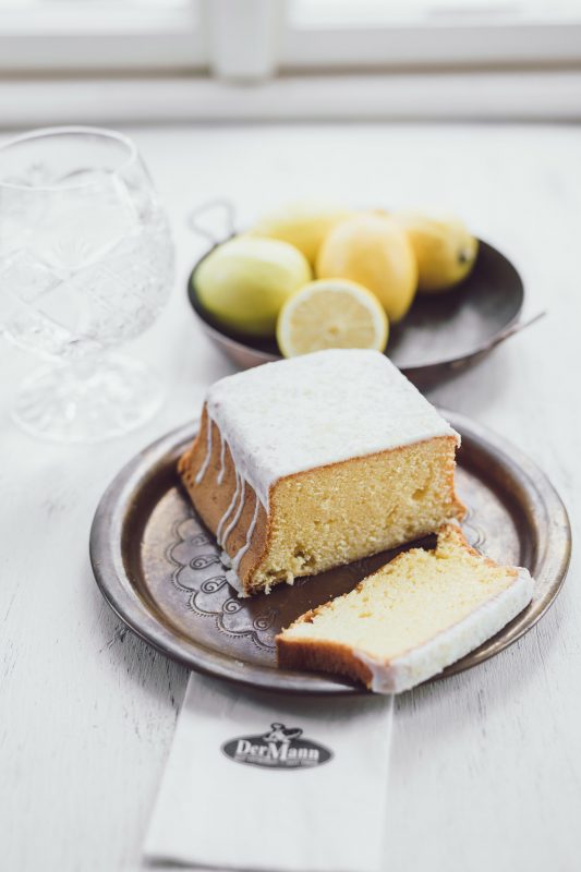 Zarter, flaumiger Zitronenkuchen nur mit natürlichen Aromen! Der Dekor besteht aus weisser Schokolade und Zitronen-Zesten in Zucker.